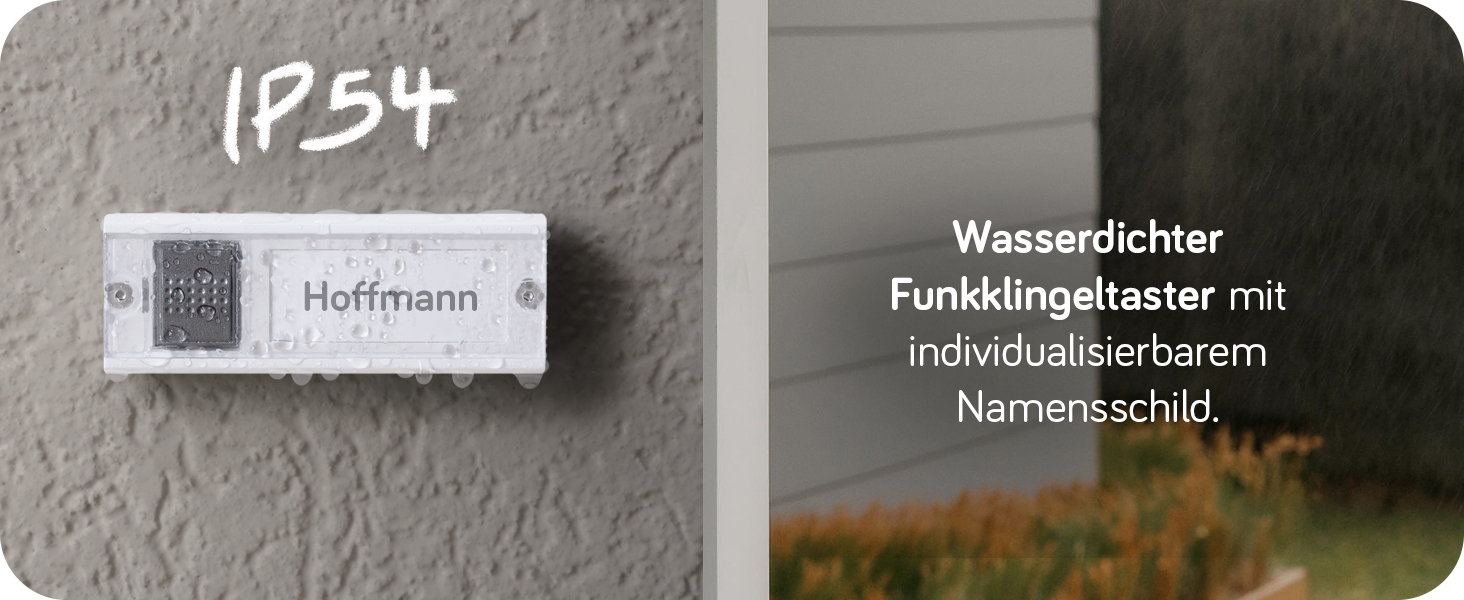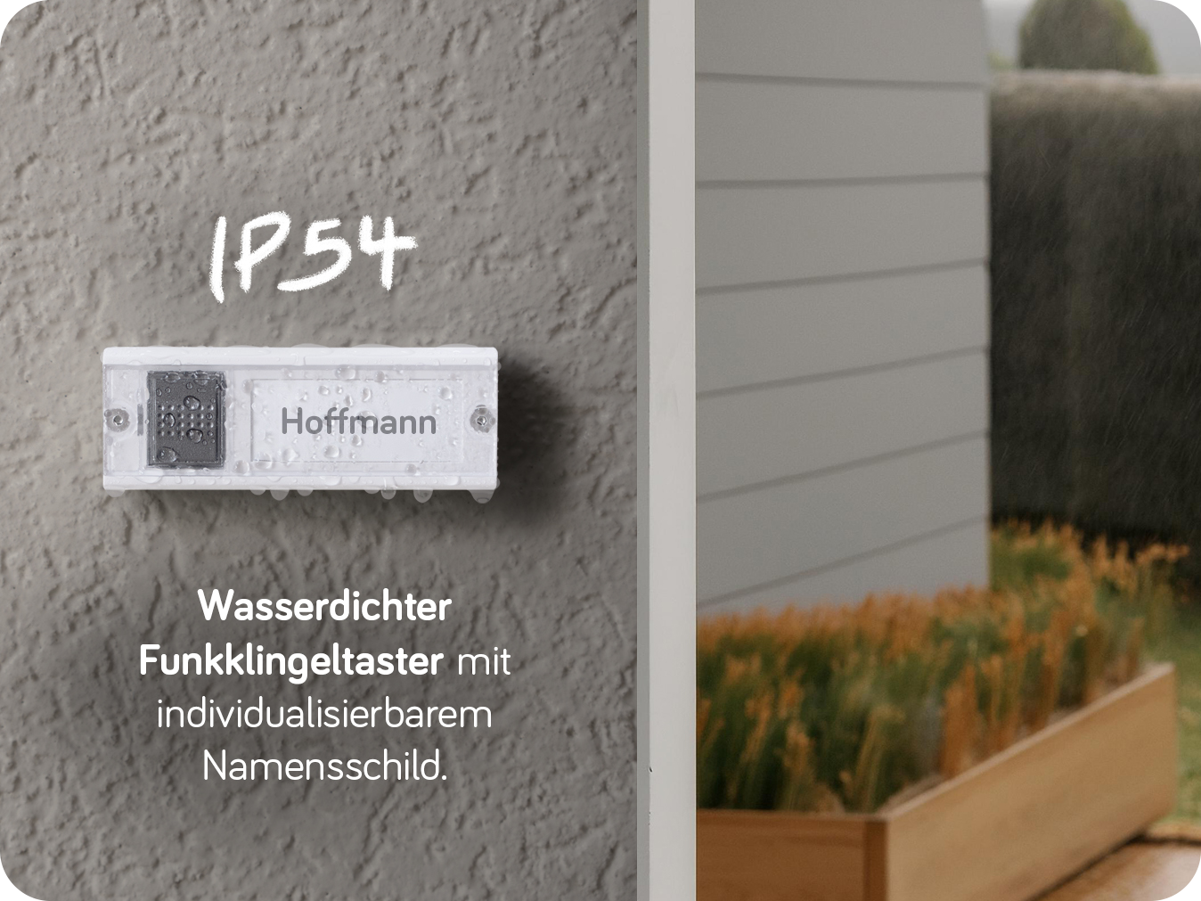- Wasserdichter Klingeltaster: Schutzart IP54, robust und wetterfest für den Einsatz an jeder Haustür