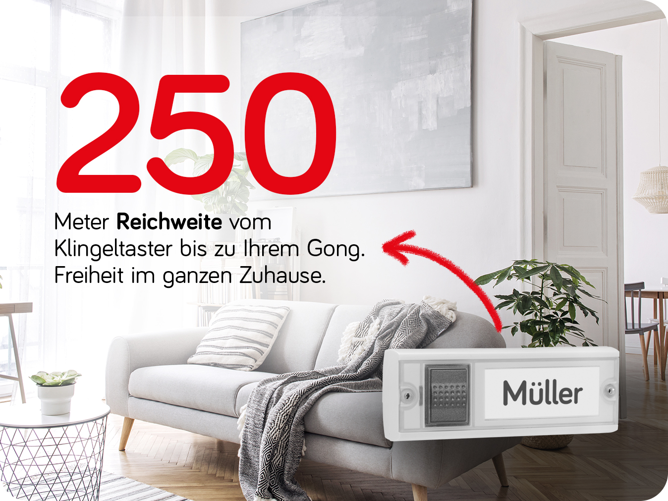 - Reichweite: Bis zu 250 Meter im Freifeld – ideal für Häuser mit großem Garten, mehrstöckige Gebäude oder größere Arbeitsstätten